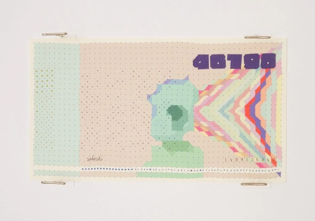 A series of 64 banknotes generated from the Bitcoin Blockchain.