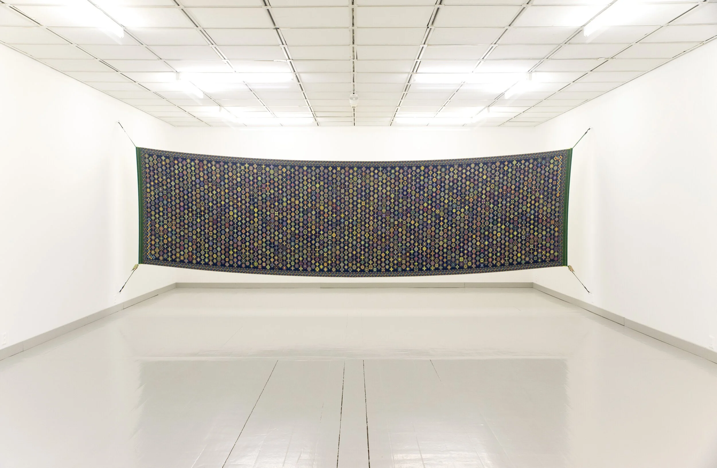 The term 'Millefleurs', from French meaning literally "thousand flowers", refers to a background style used in medieval and early renaissance tapestry consisting of many different small flowers and plants, usually shown on a darker backdrop, as though growing in grass. Weavers were obliged to repeat figure designs by members of the painters’ guild, but could often design the floral backgrounds themselves. In an effort to further extrapolate this reversal of the image hierarchy, figures and narrative have been omitted altogether, focusing solely on the 'background'. At the core of the project are computer-generated, hyper stylized, symmetrical ’flowers’. After establishing a number of fixed parameters two thousand unique flowers have been generated algorithmically and digitally woven into a tapestry. The project has been created in collaboration with engineering PhD student Jonathan Riise.