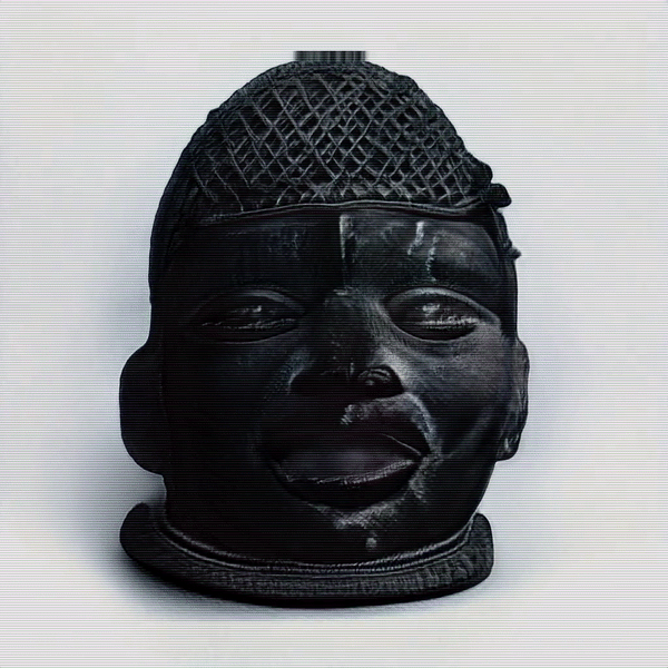 Showing latent space interpolation of Generative Adversarial Network (GANs) trained with objects looted from Benin Kingdom in 1897. The dataset consists solely of looted bronze works found in various Museum collections. Each latent interpolation is a variation of Igún trained with ceremonial heads from various hereditary craft guilds (see video captions). While Igún is primarily focused on exploring the bronze casting tradition, it was necessary to extend datasets with objects from other hereditary craft guilds. This is because the number of looted bronze objects in museum collections is not adequate to train a GANs model. Of the 3000+ looted objects, about 700 objects are ceremonial heads, and of this 700, a good number of non-figurative objects. Thus, it was necessary to borrow images from the woodcarving and pottery guild. Prototype I: Dataset consists of ceremonial heads in bronze and wood. Prototype II: Dataset consists of ceremonial heads in bronze and pottery.