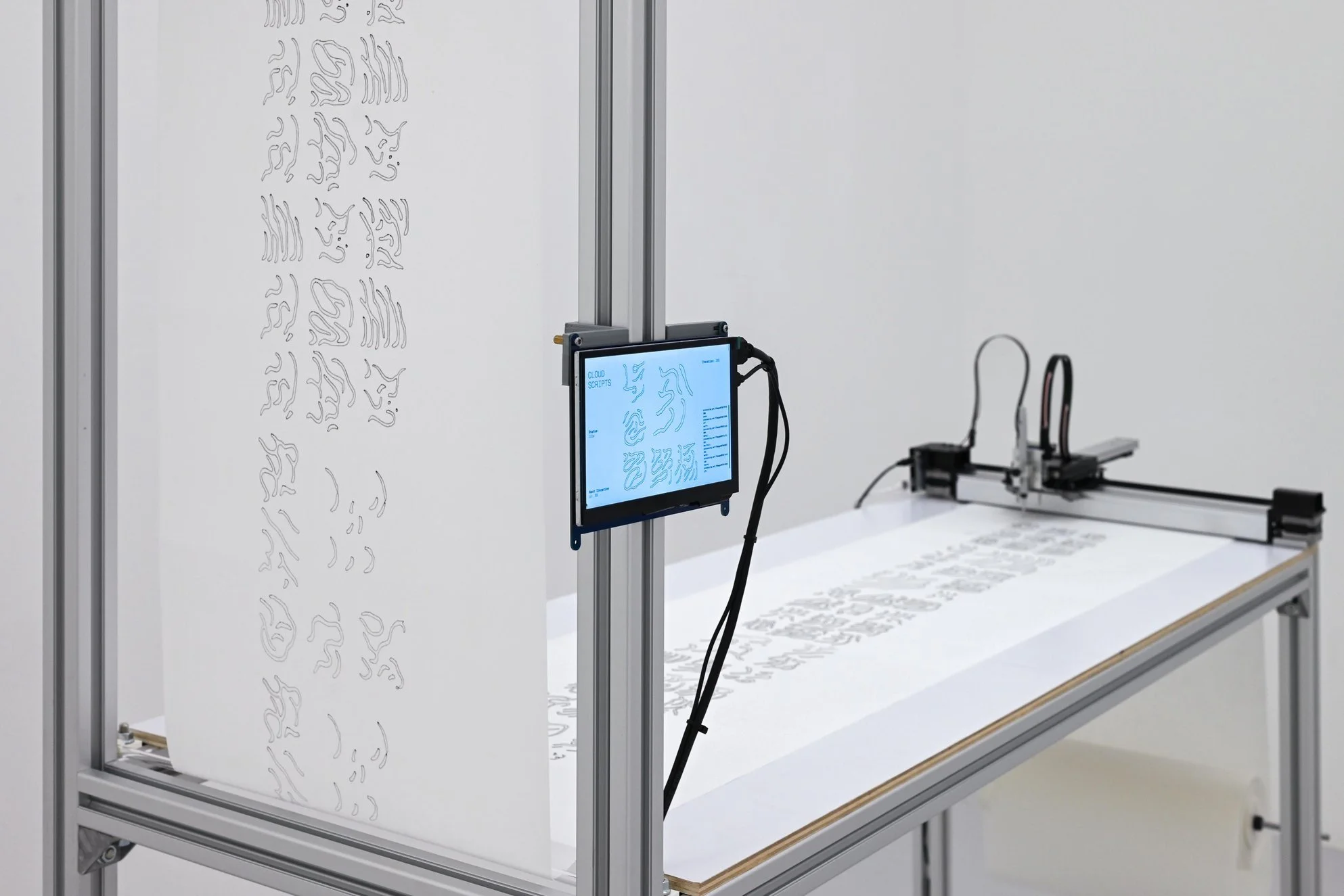CLOUD SCRIPTS is a generative art installation exploring Daoist Cloud Seals (Yúnzhuàn 雲篆) as asemic communication with the spiritual world. Using a fine-tuned Gen AI model trained on Daoist scriptures, it generates talismans—machine-made letters to the unseen realm.