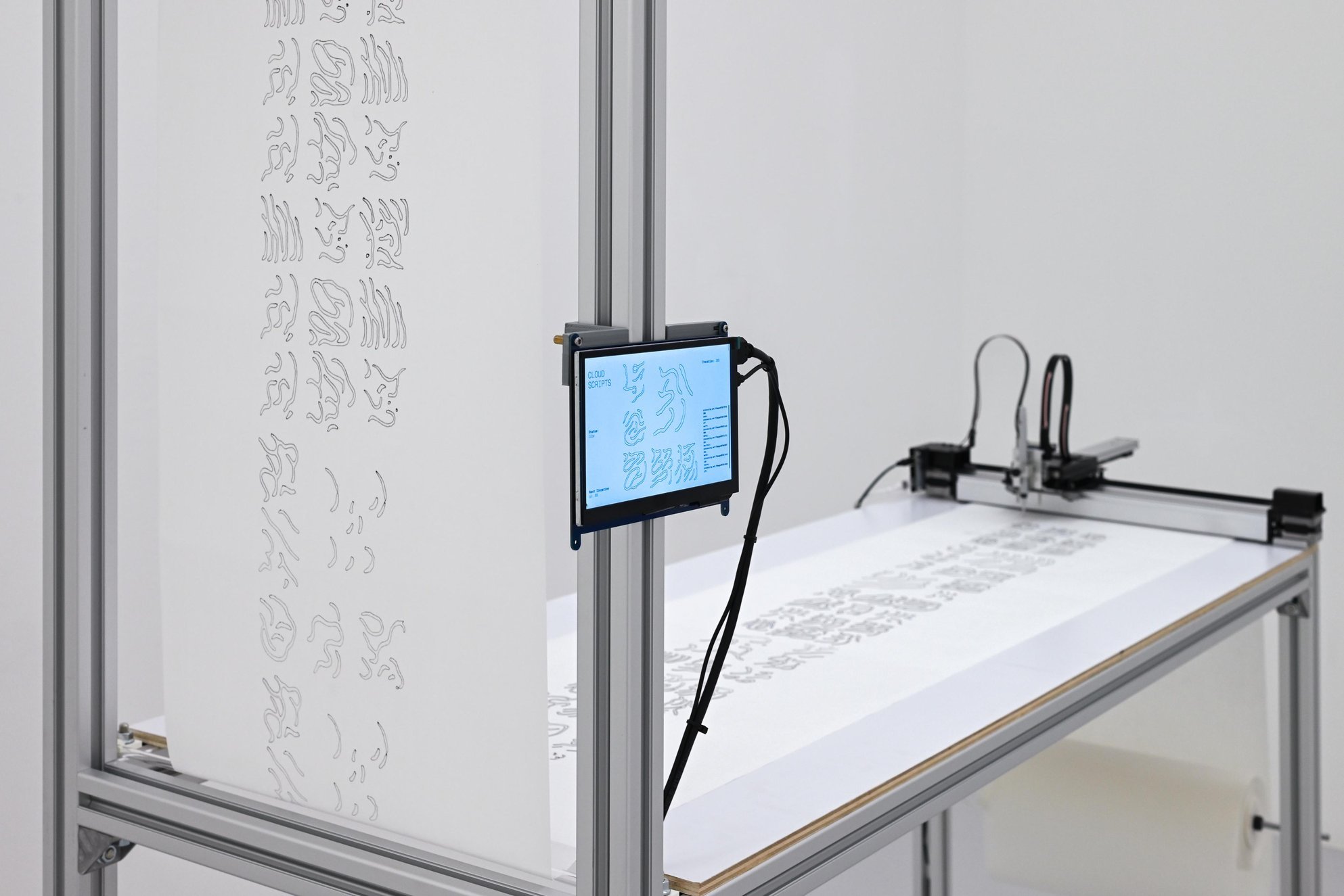 In Two Texts on Technology, Kiyoshi Miki argues that modern machines have severed the intimate relationship tools once shared with humanity. He contrasts Western technology, prioritizing efficiency and speed, with Eastern traditions cultivating humanity and spirit. Miki calls for reclaiming these traditions to resist the alienating effects of modern machines, which often oppose nature and threaten both humanity and the environment. This raises a question: What alternative forms can machines take? Machines need not be fast or utilitarian but could instead mediate between humans and the spiritual world. Drawing on Daoist traditions, where words hold spiritual significance and act as bridges to the divine, I see potential in reimagining machines as tools for spiritual dialogue. In Daoist esoteric practices, texts are sacred instructions, a concept that resonates with the logic of software and code. This inspired CLOUD SCRIPTS, a generative art installation exploring Daoist Cloud Seals (Yúnzhuàn 雲篆) as a form of communication with the spiritual world. Rooted in pre-Han shamanistic traditions, Cloud Seals are inspired by cloud formations believed to embody the movements of spirits. Using machine learning, I trained a model on a corpus of Cloud Seals from Daoist scriptures to generate talismans. These talismans, intentionally devoid of specific meaning, symbolize my attempt to engage with the spiritual realm. The results function as a letter to the spiritual world, articulated through the medium of machines. CLOUD SCRIPTS challenges the capitalist ideals driving modern technology, offering an alternative vision where machines reconnect humanity with the spiritual and natural worlds.