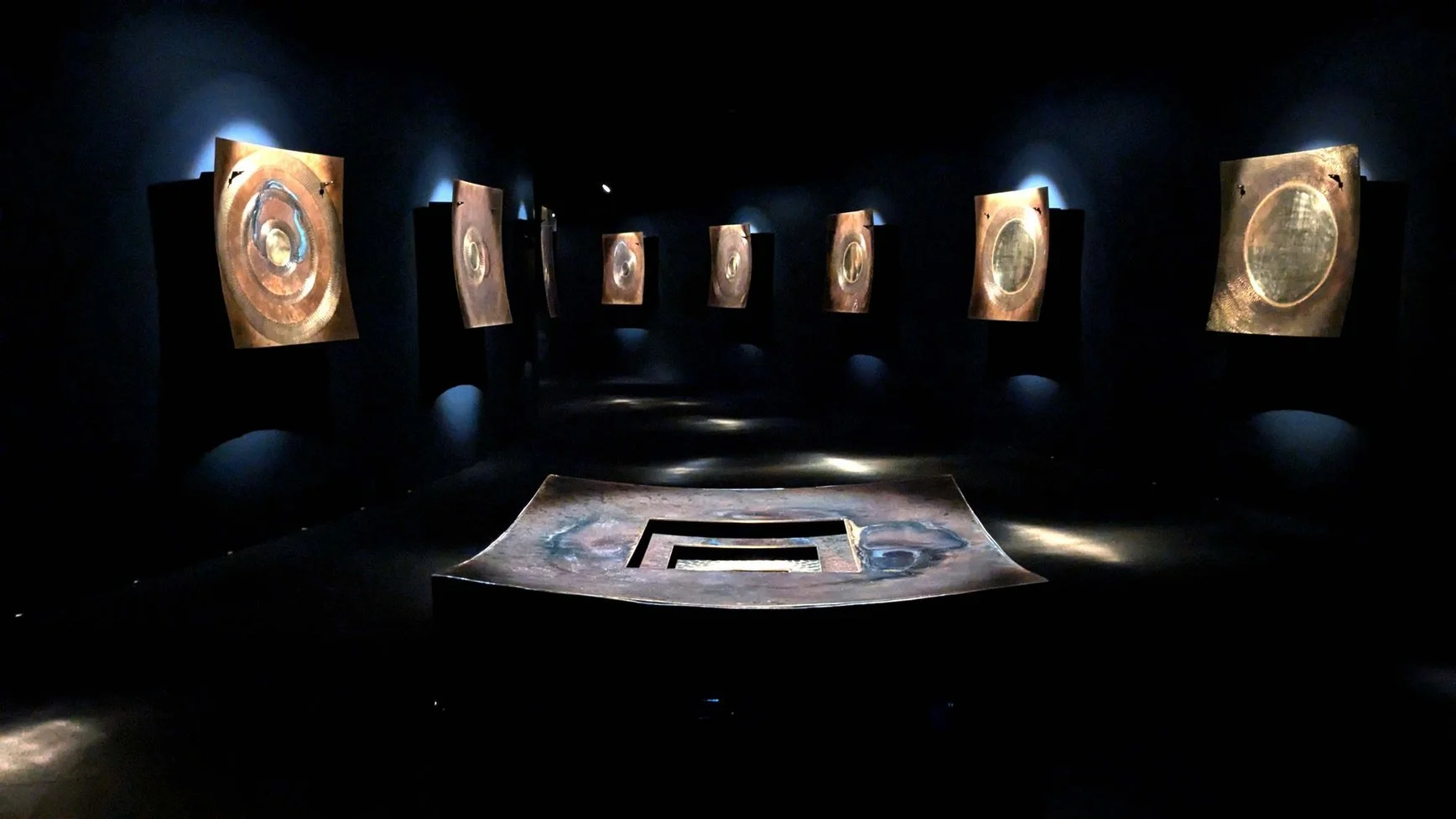 Conceptualised with Lucier himself, the sound environment focuses on sonic resonance and reflection, phenomena that he explored throughout his career. The organoid’s neural activity is extended into the space via electromechanical mallets by striking hand-crafted brass plates. Microphones throughout the space ‘perceive’ these tones which are then fed back to the ‘brain’ via electronic stimulations, a closed-loop system that allows it to constantly adapt and compose new work in the gallery space.