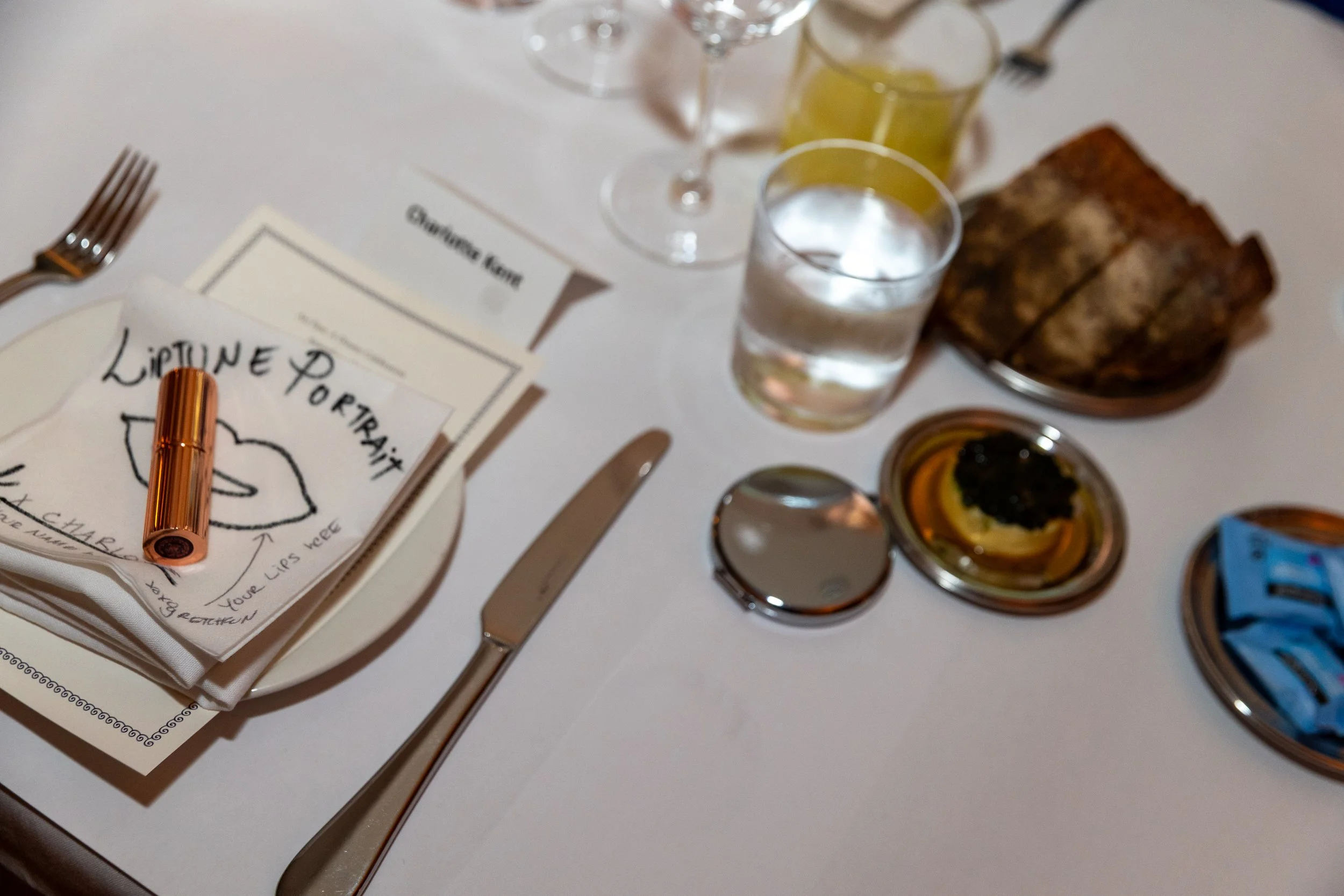 Gretchen, a 2025 Lumen Prize Finalist for Facetune Portrait – Universal Beauty, Nigeria (gown), celebrated her recognition with a unique, interactive gesture. Each guest received a custom napkin featuring hand-drawn lips and a space for their name, along with a complimentary Charlotte Tilbury lipstick. Guests were invited to kiss the napkin where the lip outline was, echoing the themes of her Facetune series, which explores the tension between our real selves and AI-driven beauty ideals.